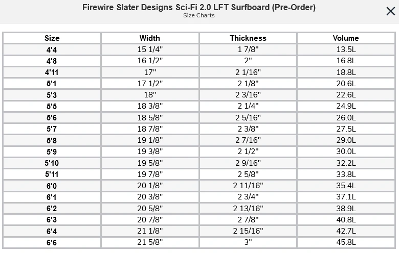 The Sci-Fi 2.0 features a wide point forward of center, which allows the design to be ridden 1” shorter than its predecessor with more volume packed into shorter length. It also has a more pulled-in tail and rocker (similar to the Cymatic) giving the design greater range than the original, while still maintaining good small wave prowess.