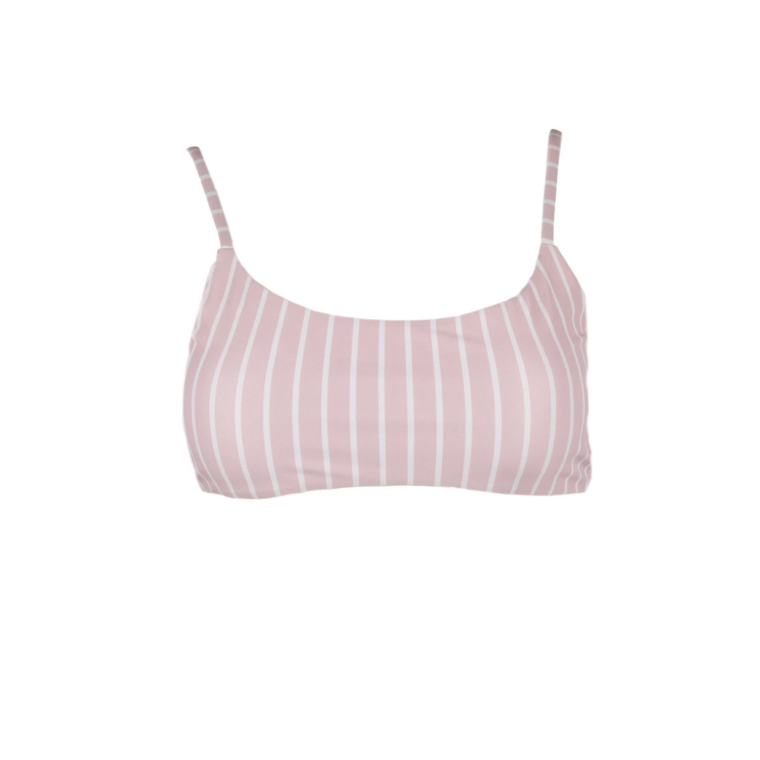 A Moderate coverage bralette style swim stop with adjustable straps and a “S” hook back closure.