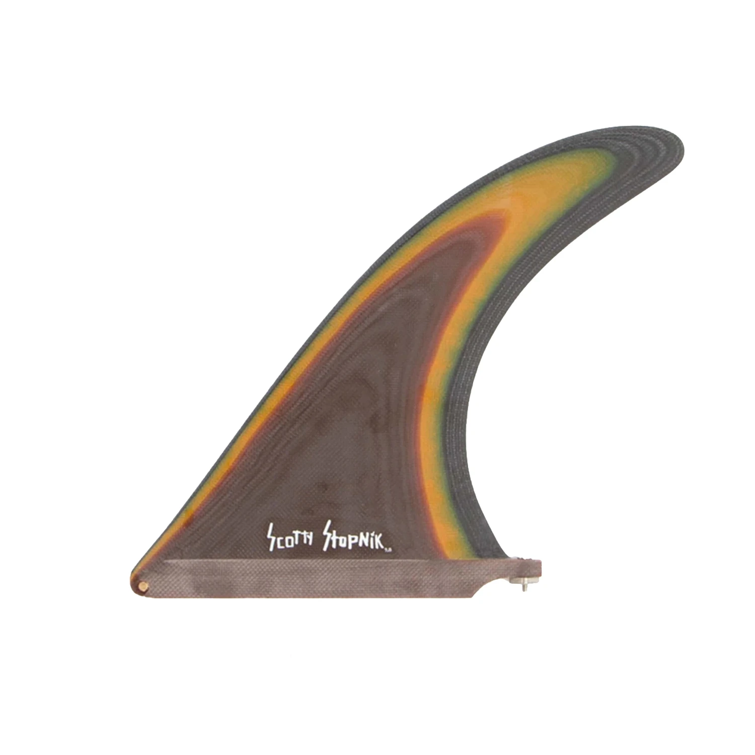 When Scotty Stopnik designed his 9.8″ signature fin he wanted to make something good for nose riding but didn’t restrict him when he wanted to lay into turns—something that would work well for beach breaks or points as well. The result is a timeless, raked out, all-in-one template with a stiffer build great for any log.