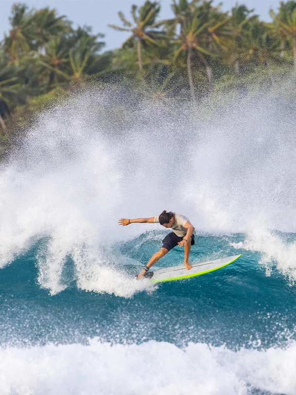Our team riders tested this in all conditions from windy and waist high to overhead and hollow. It’s a board that does everything and more – airs, turns, barrels and still with a bit of float to skate on the weaker days.